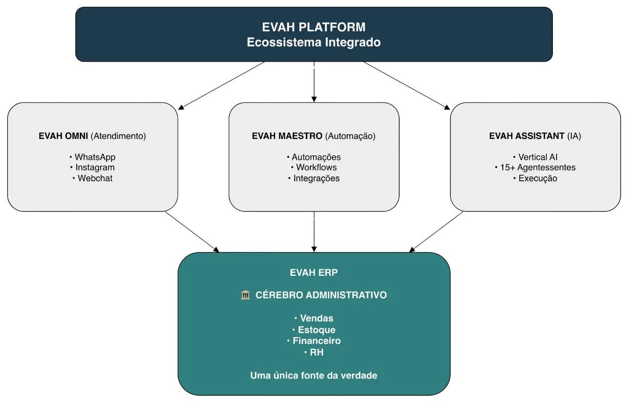 - EVAH Maestro (Automação) conecta sistemas → EVAH ERP é o destino