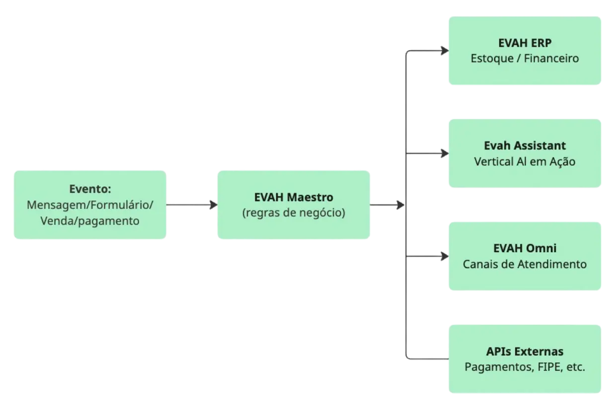 - EVAH Maestro (caixa central com “Regras de Negócio + Automação”) →